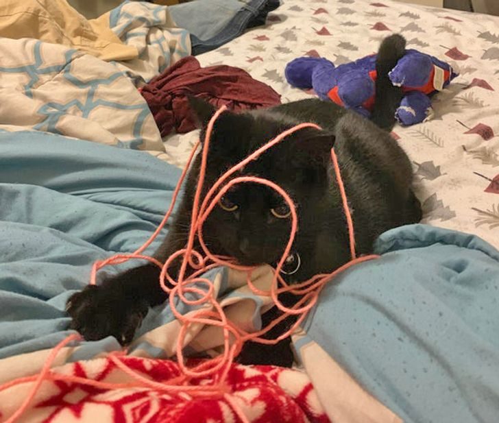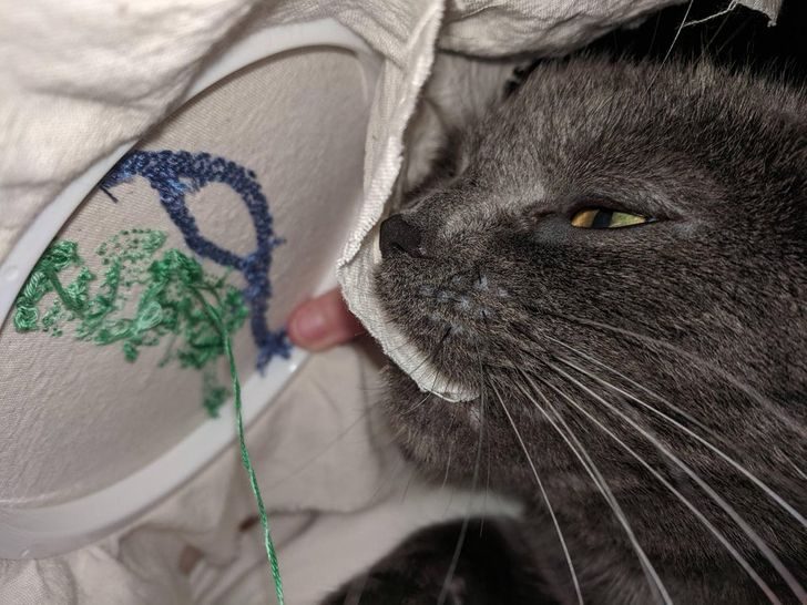«А мой кот помогает мне с вышивкой»