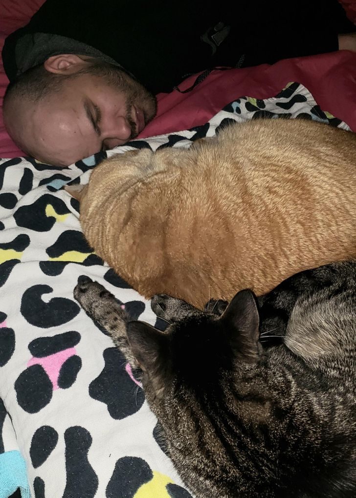 «Муж долгое время не хотел заводить кошку, потому что не любит их. Теперь он каждое утро дает ей немного сливочного сыра и спит с ней на диване. Но продолжает утверждать, что она ему не нравится»