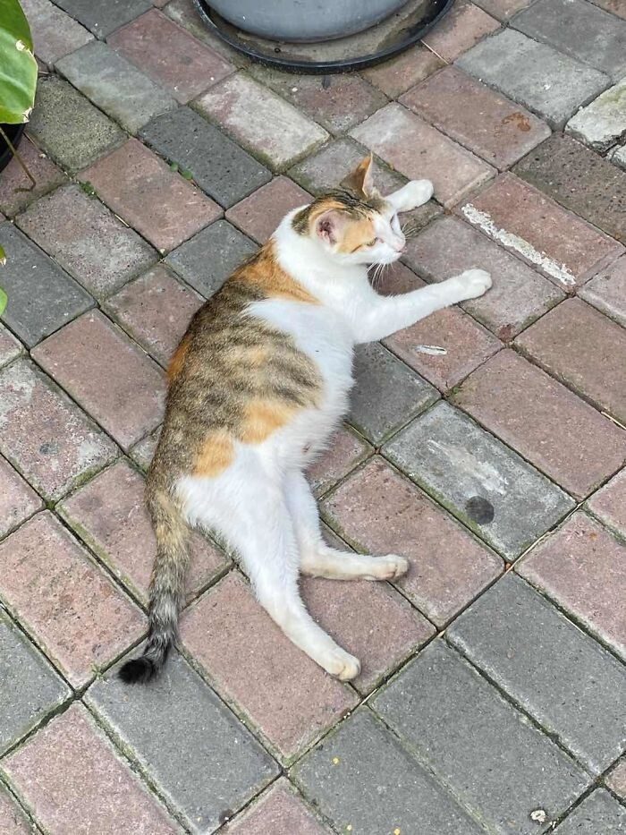Сотрудница компании Holmes&Marchant в Шанхае заметила эту красотку прямо у дверей офиса. Будущая мамочка громко мяукала, смотря на каждого, кто заходил в здание. Женщина не могла оставить ее на произвол судьбы, и взяла с собой в офис.