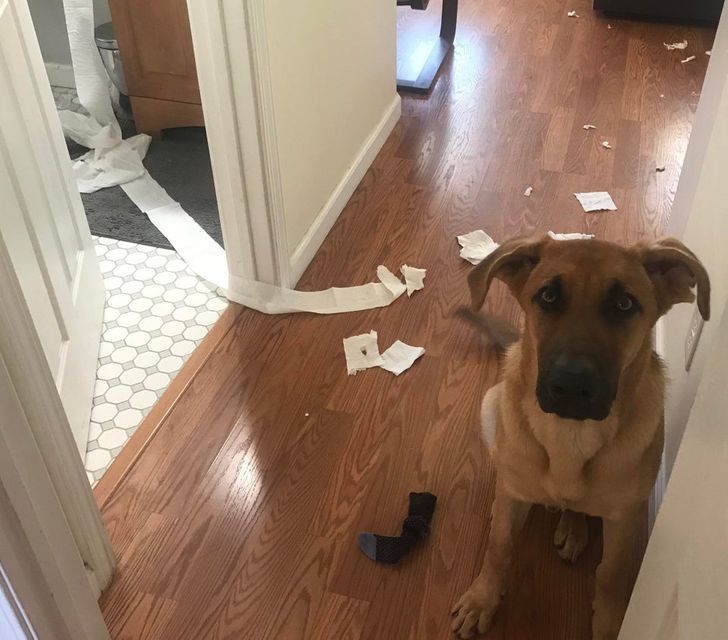 «Мой щенок обнаружил носки и туалетную бумагу»