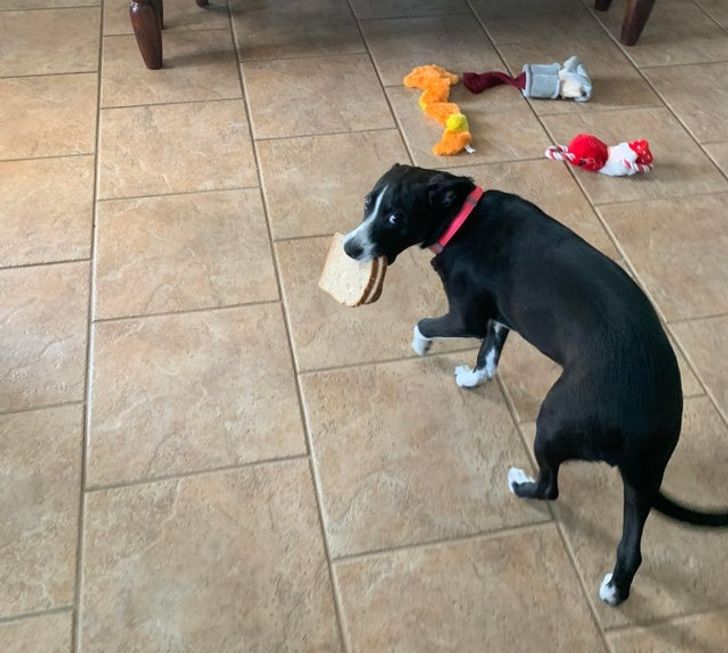 «Застал собаку за кражей хлеба, только посмотрите на выражение ее морды»