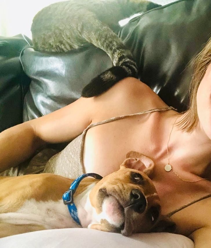 Кошка изо всех сил пытается привлечь внимание к себе после появления щенка
