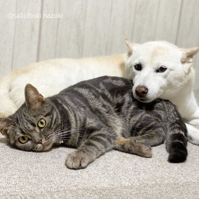 Обычно у кошек и собак очень бурные и неспокойные отношения, поэтому люди часто говорят, что ссорящиеся братья и сестры живут «как кошка с собакой». Однако в Японии живёт одна счастливая пушистая семья, которая доказывает, что это неверно.