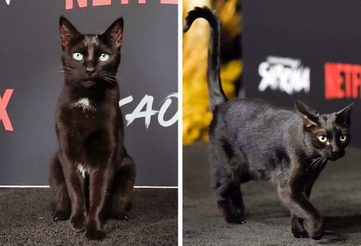 Салем, кот-актер из сериала «Леденящие душу приключения Сабрины», шел по дорожке на премьере