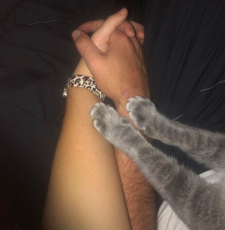 «Моя жена на 30-й неделе беременности, и именно так кот обнимает ее»