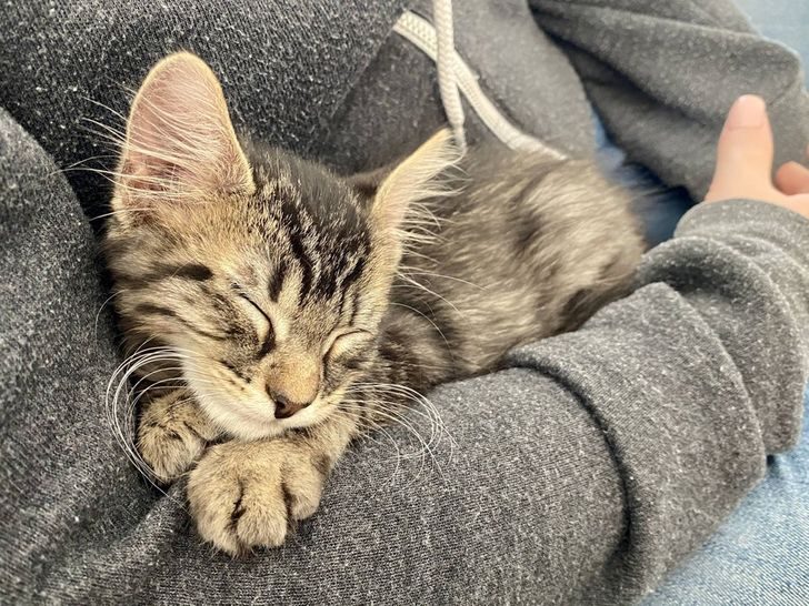 «Она заснула, обнимая толстовку у входной двери, ожидая моего возвращения домой. Разве это не самый милый котенок?»
