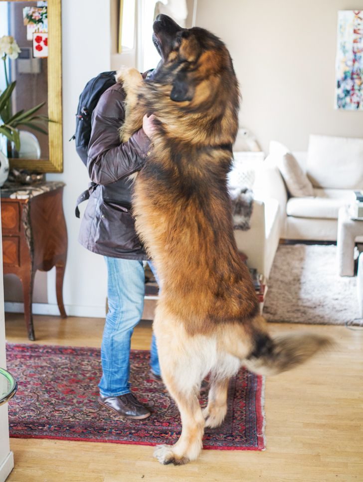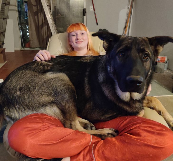 Немецкая овчарка тоже вырастает о-го-го, если кормить от души. Вот эта весит больше хозяйки, 63 кг!