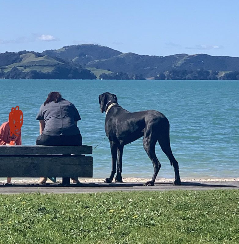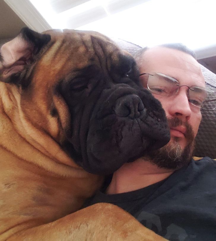 Песик по кличке Линкольн знает, что легко переключит внимание хозяина, просто заслонив его жену. Габариты позволяют.