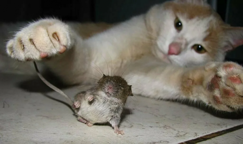 Конечно, если кошка голодна, то ни о каких играх речи и быть не может: одно мгновение — и жертву тут же шинкуют на кусочки. Быстро и почти безболезненно. А вот если киска уже сытая и поймала добычу чисто чтобы пофаниться — мучительная смерть ей обеспечена.