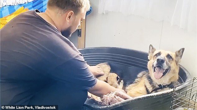 К счастью поблизости нашлась немецкая овчарка Сандра, которая выкармливала своего щенка. В норме она успешно ставит на ноги до восьми щенков в каждом помете и это очень важно, потому что львята не котята, им нужно много молока. По своему составу собачье молоко львятам подходит, в нем есть все полезное. Но была одна серьезная загвоздка — у Сандры жесткая антипатия к кошкам, за дело. И как она отреагирует на котят-переростков?