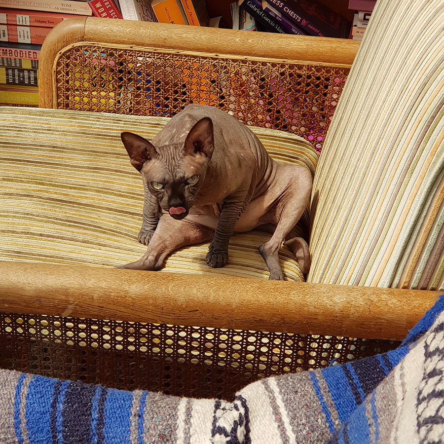 Дуэль взглядов за право сидеть на диване продолжается уже полчаса