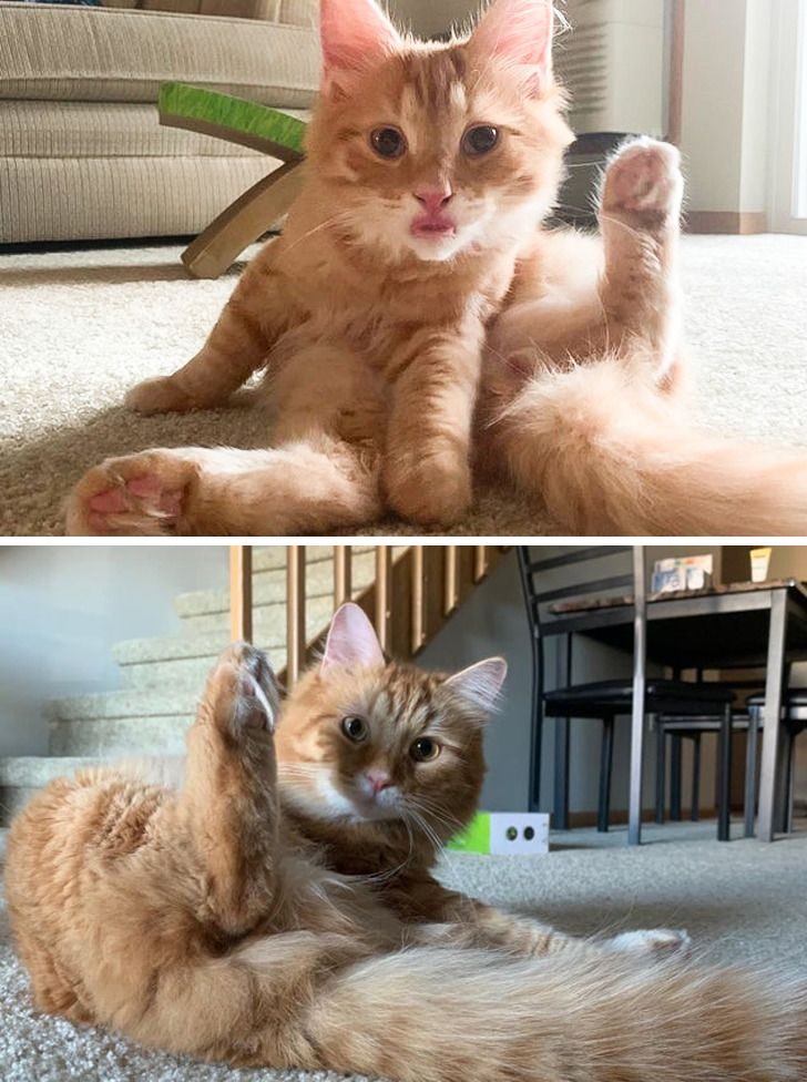 Кот поймал свою лапу и счастлив с этого