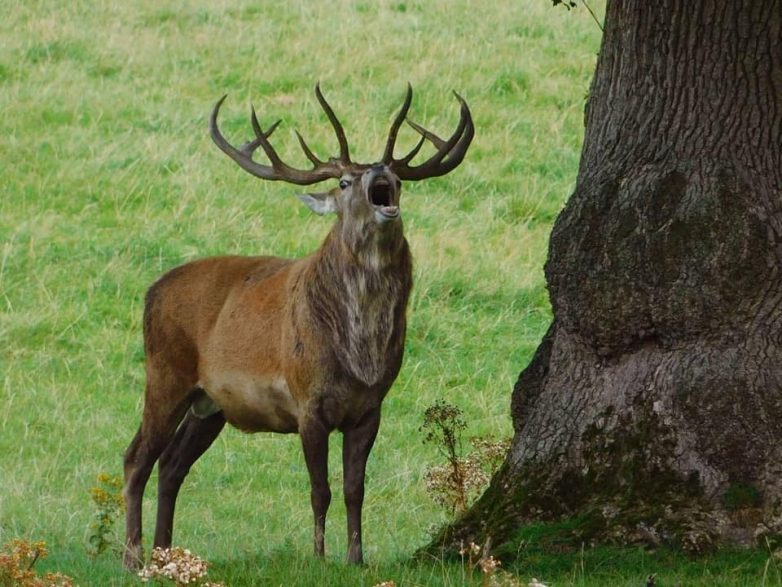 Кормушку специально повесили повыше, для птичек, но олениху это не остановило