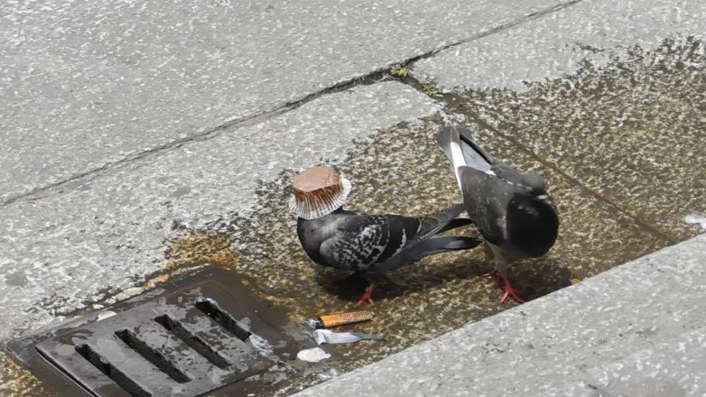 Голубь с модной шляпкой и голубь, который без нее