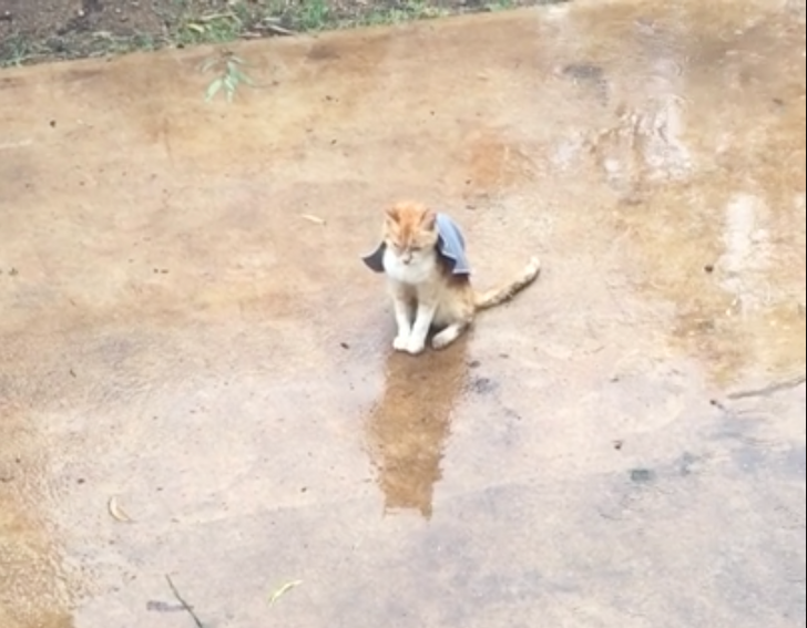 «Мой кот любит сидеть под дождем»