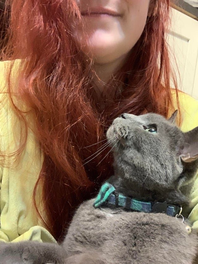 Жене несколько завидно, когда она видит, как кошка смотрит на её мужа