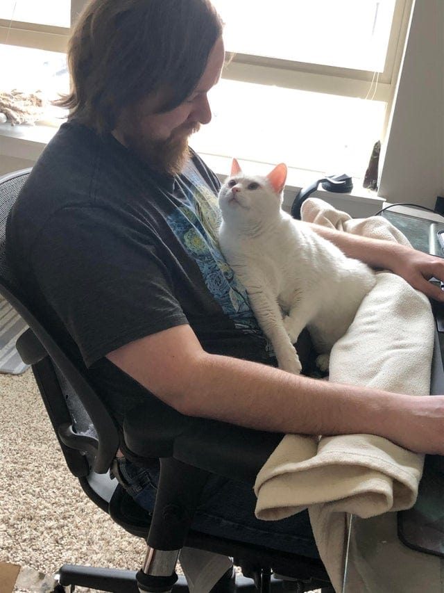 Кот заботится о здоровье хозяйки и намекает, что пора бы ей отдохнуть от работы