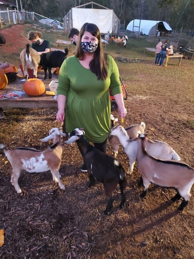 Брать угощение с рук коза не захотела. То ли дело вкусное и зеленое как трава платье!