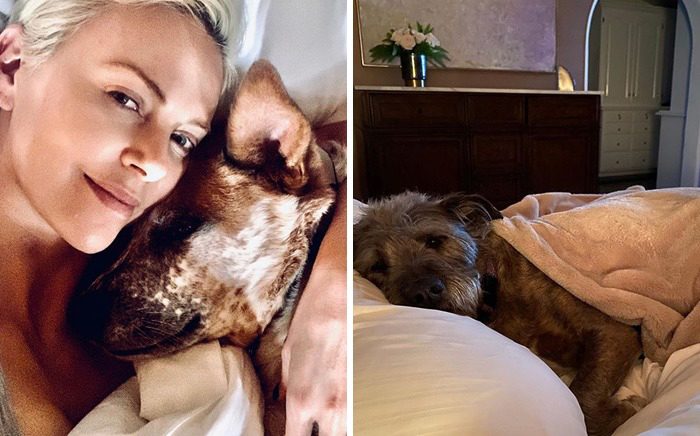 Терон — активная защитница прав животных. Сама актриса выросла на ферме в Южной Африке. Шарлиз сотрудничает с различными организациями по защите прав животных и у неё живут несколько, спасённых ею собак. Две из них, Джонни Юта и Беркли, показаны на снимке выше. Самая известная собака актрисы — Такер, которого она усыновила ещё в 2001 году.
