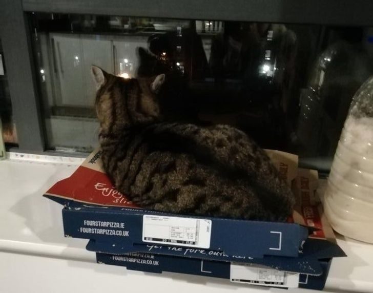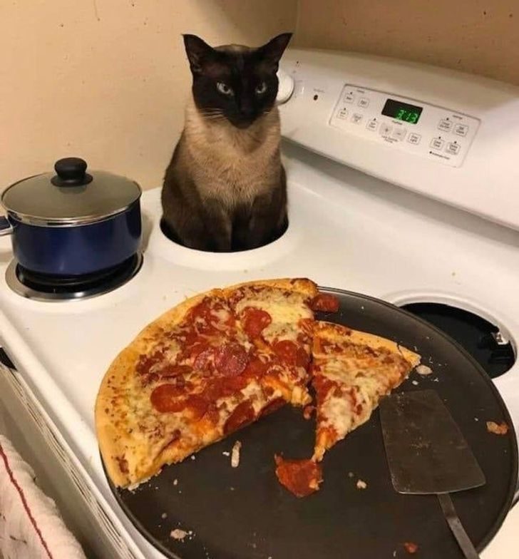 «Моя кошка только что легла на мою пиццу и раздавила ее»