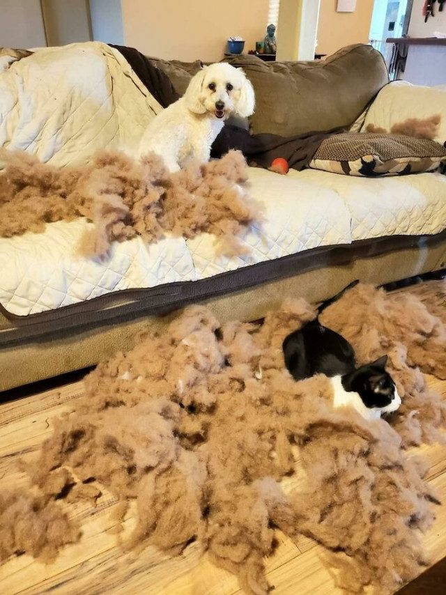 Подозрительная тишина, опущенная вниз голова, заискивающий взгляд и прижатый к телу хвост — всё это сигнализирует о том, что кого-то только что застали на месте «преступления» и «арестовали».