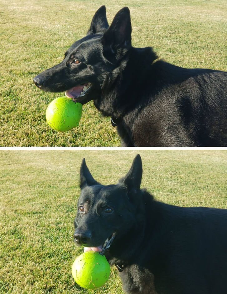 «Купил игрушку моему песику. Когда он ее поднял, планеты выровнялись для этой идеальной фотографии»