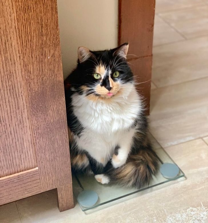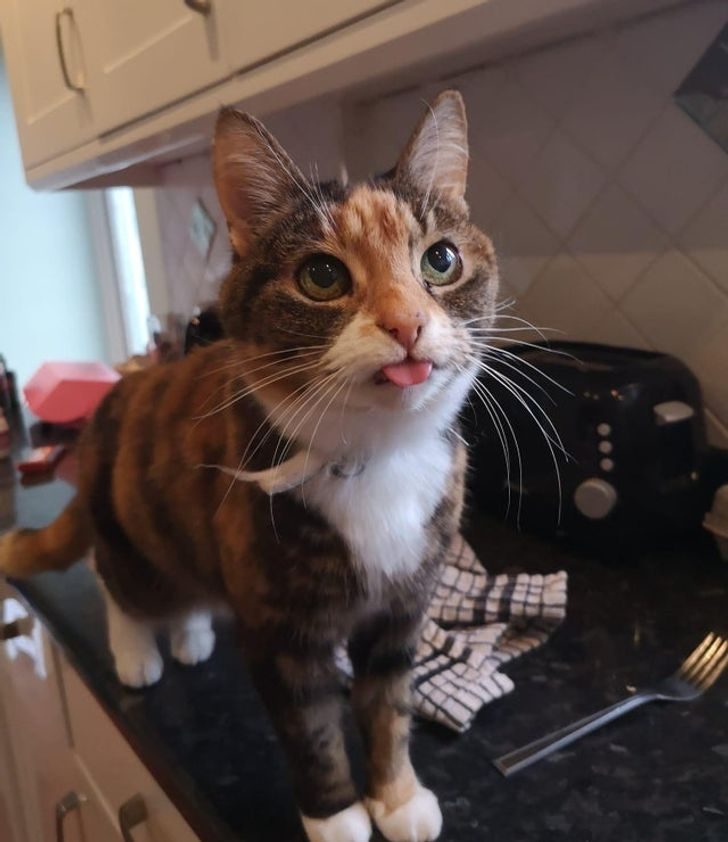 12. «Вот как наша 16-летняя кошка дразнит нас, отлично зная, что ей нельзя находиться на кухонной стойке»