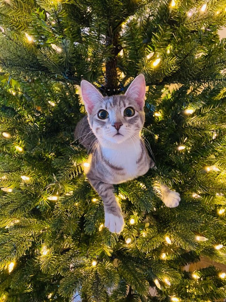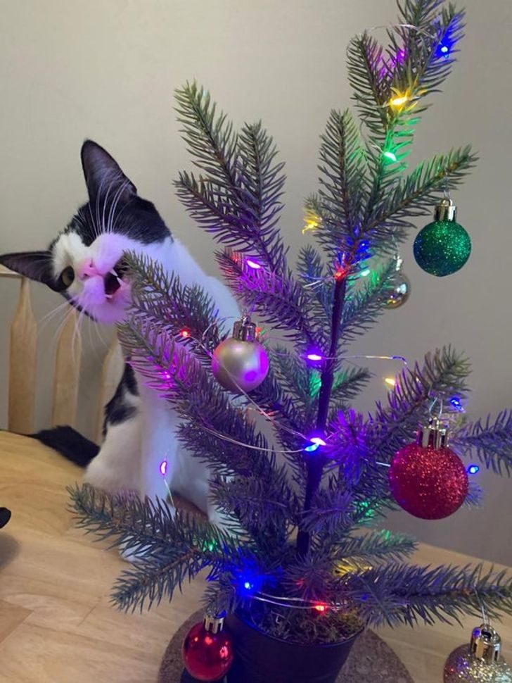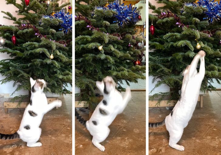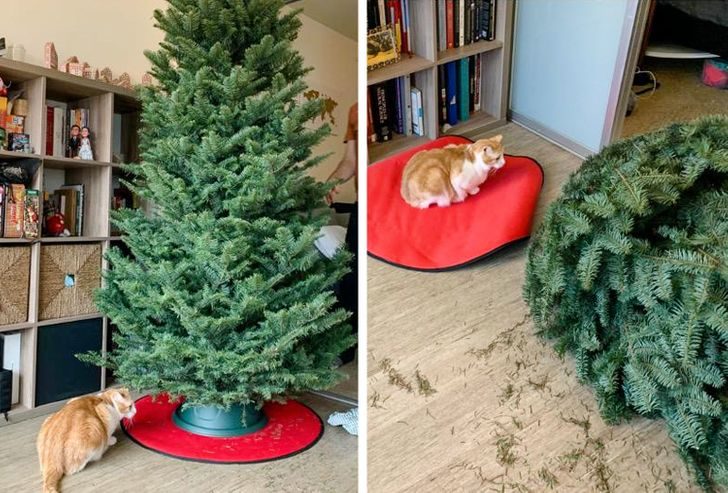 Через 24 часа после того, как в доме появилась рождественская елка, коты уже заявили, что она принадлежит только им
