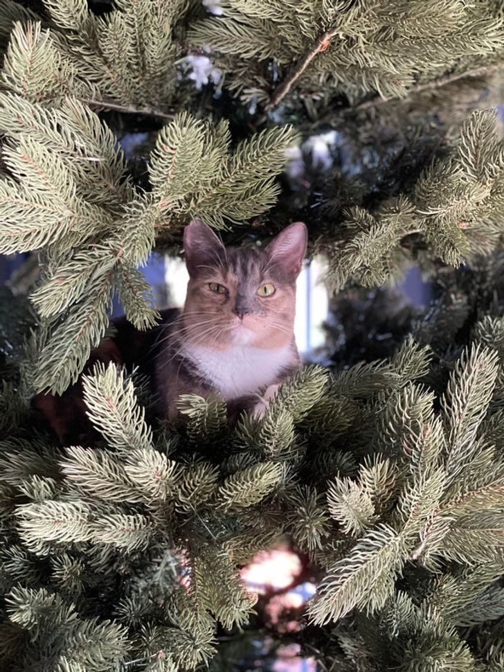 “Только взяли кошку из приюта и это её первая ёлочка, а она уже знает, что с ней делать”