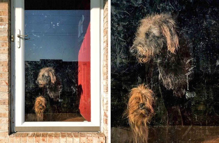 Издалека — собаки за грязной стеклянной дверью, а вблизи — старинная картина