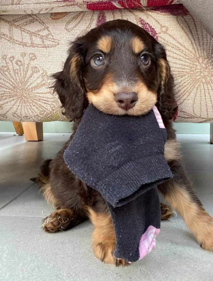 Для щенка Честера нет лучше игрушки, чем старый носок
