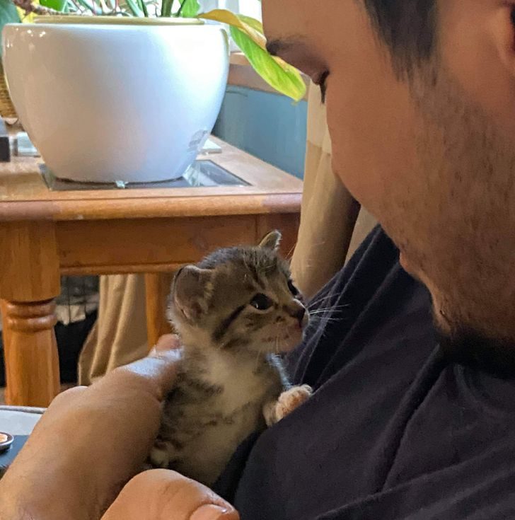 «Приютили этого малыша несколько недель назад. Он был очень застенчивым, но теперь не оставляет меня в покое»