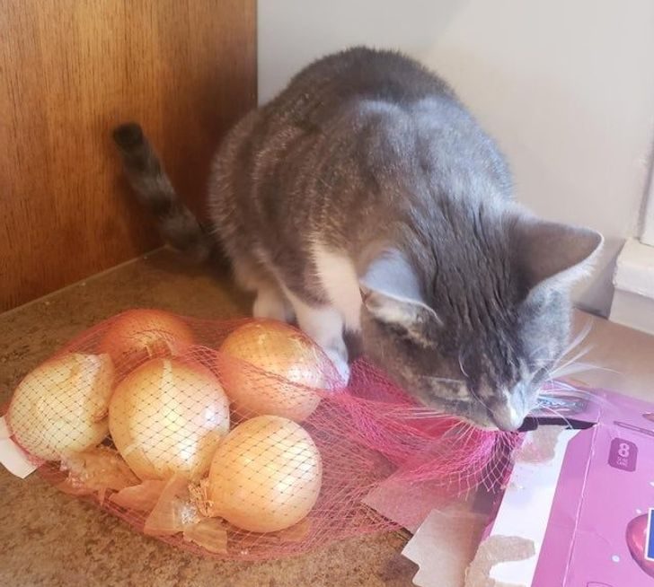 Ладно бы он ел сам лук, витамины и все такое. Но сетку-то зачем жевать?