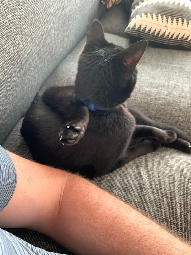 Судя по выражению физиономии, ему вполне удобно в такой позе