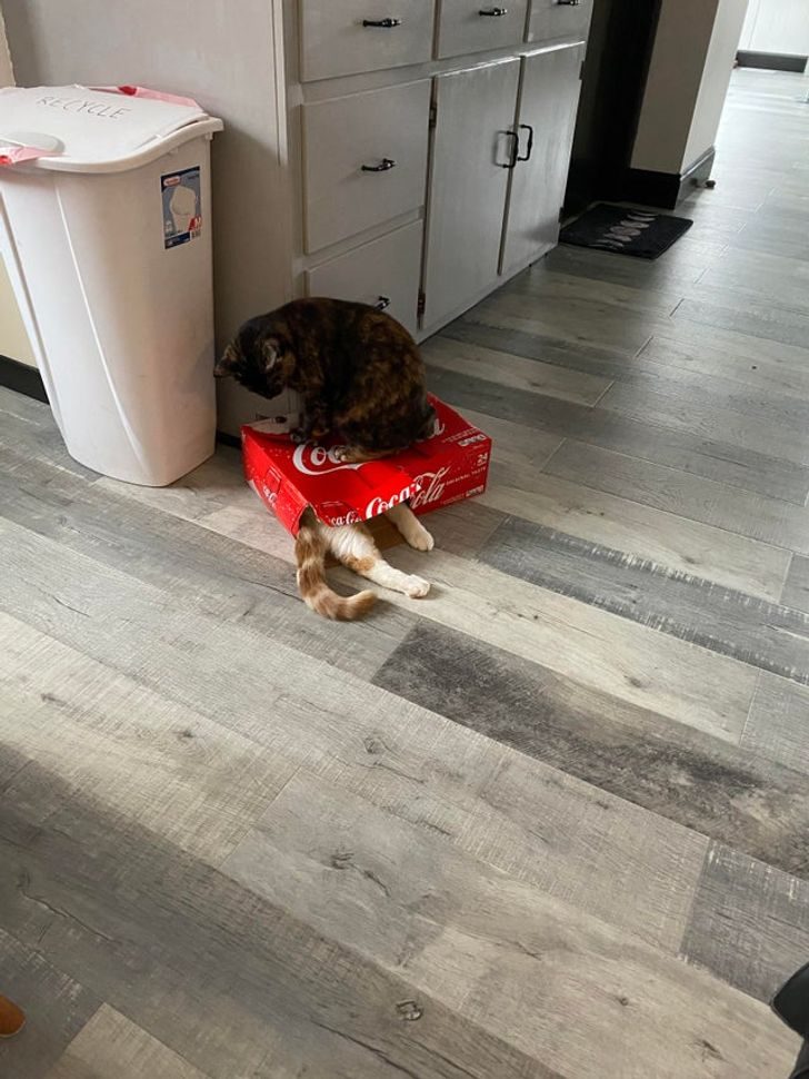 «Наша кошка ненавидит всех и каждого, а особенно свою дочь — ту, что сидит сверху. У меня уже пресс болит от смеха, когда я смотрю на ее морду»
