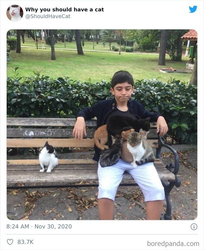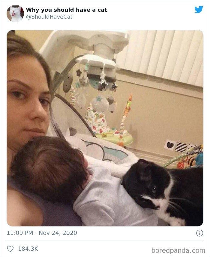 В описании твиттер-аккаунта Why you should have a cat говорится, что это идеальная страничка, если вам нужно убедить своих домашних завести кошку, а они отказываются.
