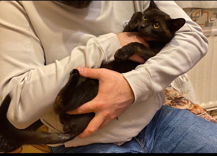 Кот прибился несколько месяцев назад. На фото он впервые заснул на коленях у хозяина – начал доверят.