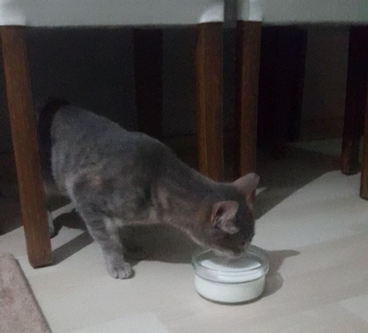 Кошка без лишних церемоний зашла в квартиру и позволила угостить себя молоком. Уходить не стала – зачем?