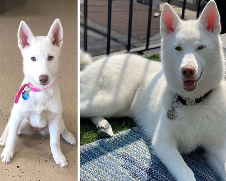 «Эм-м-м, мы понятия не имели, какая полная пушистость нас ожидает. Фото слева сделано в 2 месяца, фото справа — Финн в 8 месяцев».