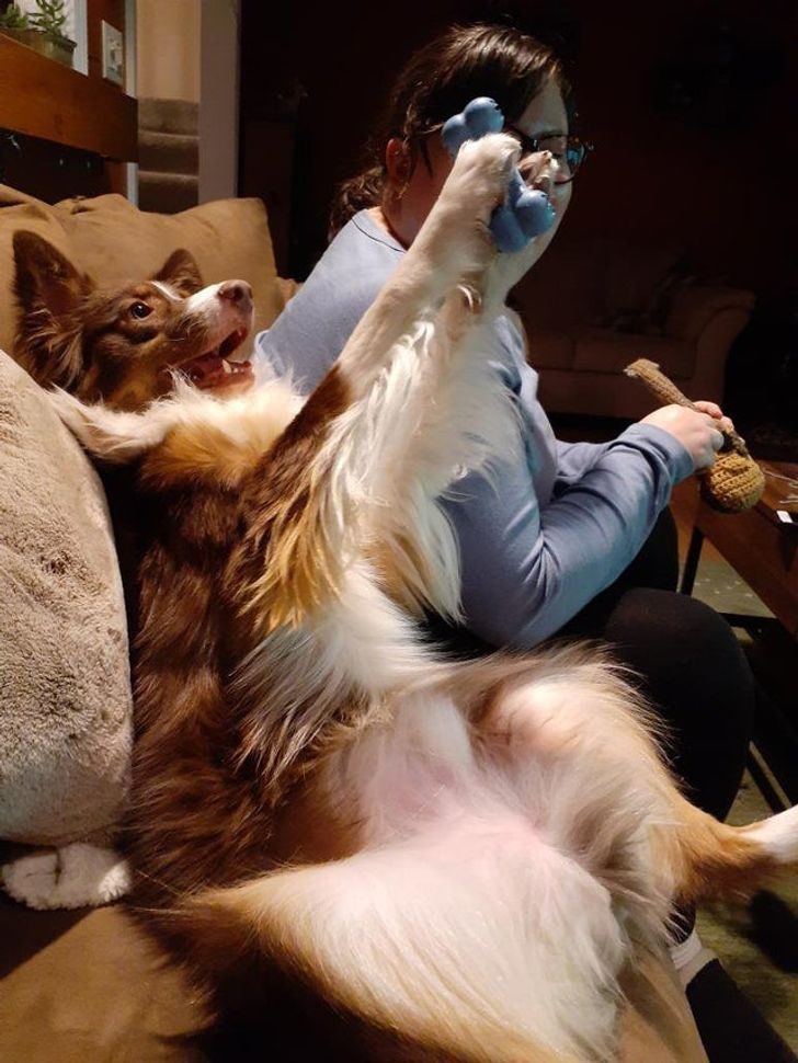 «Собаке 7 месяцев, и ей нравится сидеть на руках, как будто она не такая уж и большая»