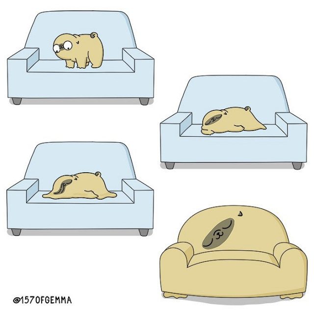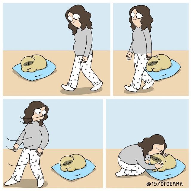 Мопс Мочи (Mochi) стал для испанской художницы Джеммы Жене (Gemma Gené), известной под творческим псевдонимом 157ofgemma, источником вдохновения для создания серии очаровательных комиксов.