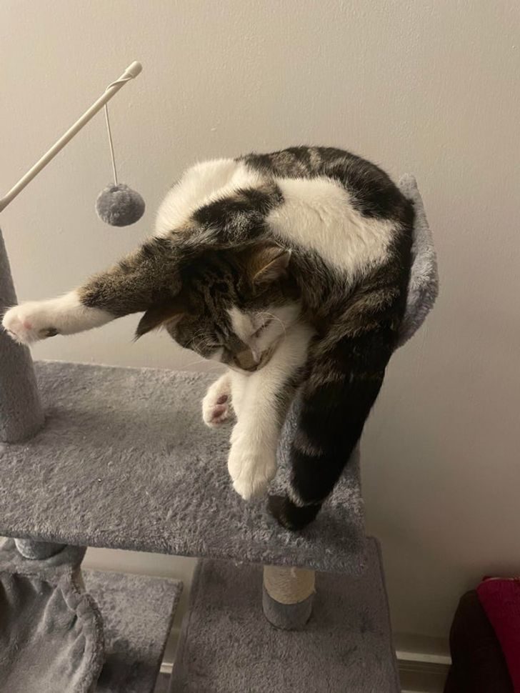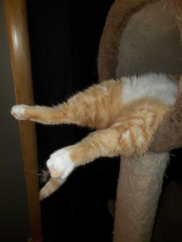 Не кот, а прямо йог какой-то, судя по позе для сна
