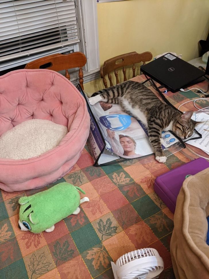«Мой кот засыпает в самых странных местах время от времени. Ему 12 лет»