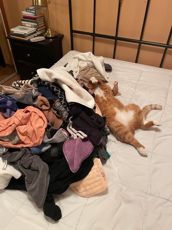 «Мой кот, наверное, думает, что он — дракон, спящий на своих сокровищах»