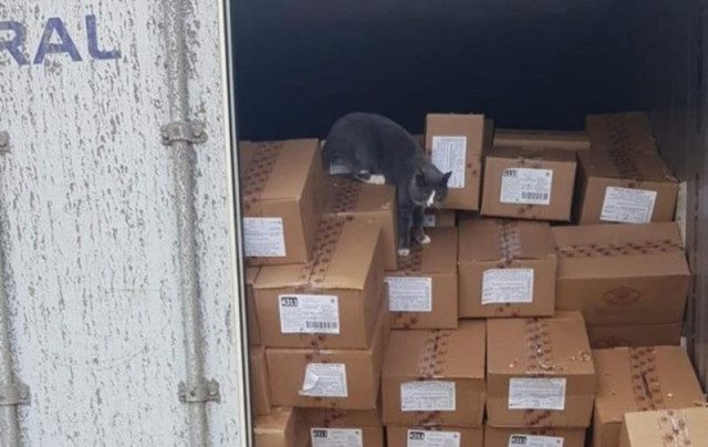 В середине января украинская транспортная компания Star Shine Shipping LTD на своей страничке в Facebook сообщила о необычной истории выживания любопытного животного из семейства кошачьих. Когда открыли опечатанный контейнер, который за 3 недели преодолел более двух тысяч километров пути из Украины в Израиль, работники компании обнаружили внутри серую кошку. Она выглядела немного напуганной, но в остальном была в хорошем состоянии несмотря на то, что выдержала долгое путешествие без еды и воды.