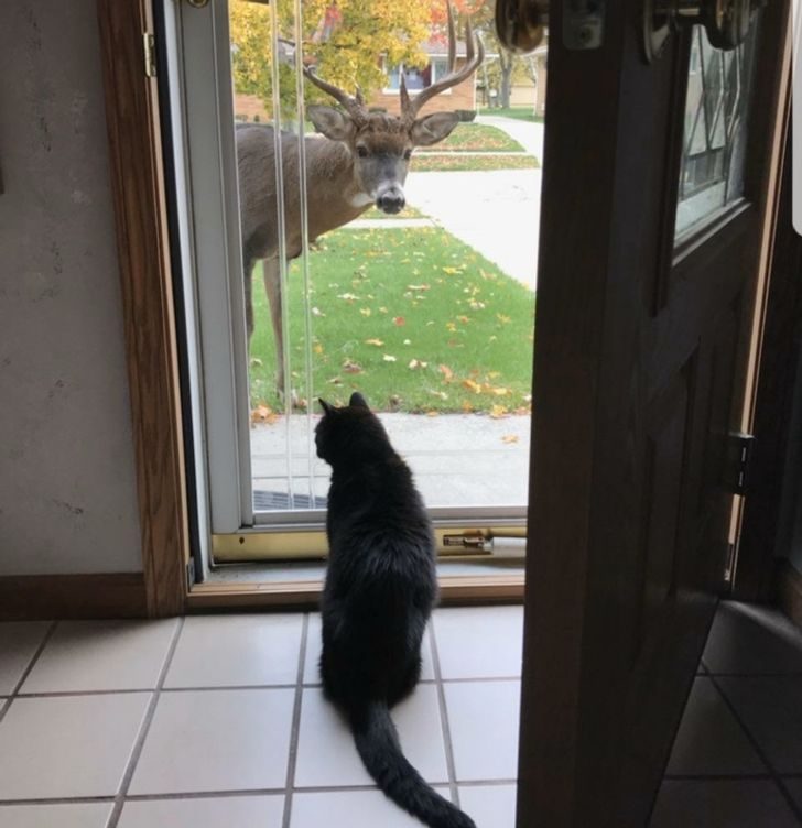Кот в раздумьях – идти ли на прогулку, пока во дворе этот, с рогами?
