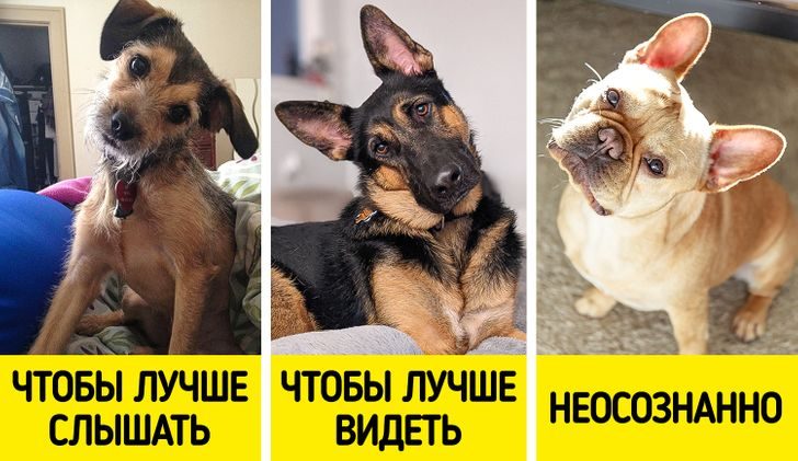 Многие владельцы собак обращают внимание на то, что, когда мы разговариваем со своими питомцами, те очаровательно наклоняют голову то на один бок, то на второй. На этот счет выдвигались разные версии. Согласно одной теории, собаки наклоняют голову, чтобы лучше слышать хозяина, что обусловлено строением их ушей. Другая гласит, будто животное понимает, что человек положительно реагирует на эту позу, и именно поэтому так поступает.