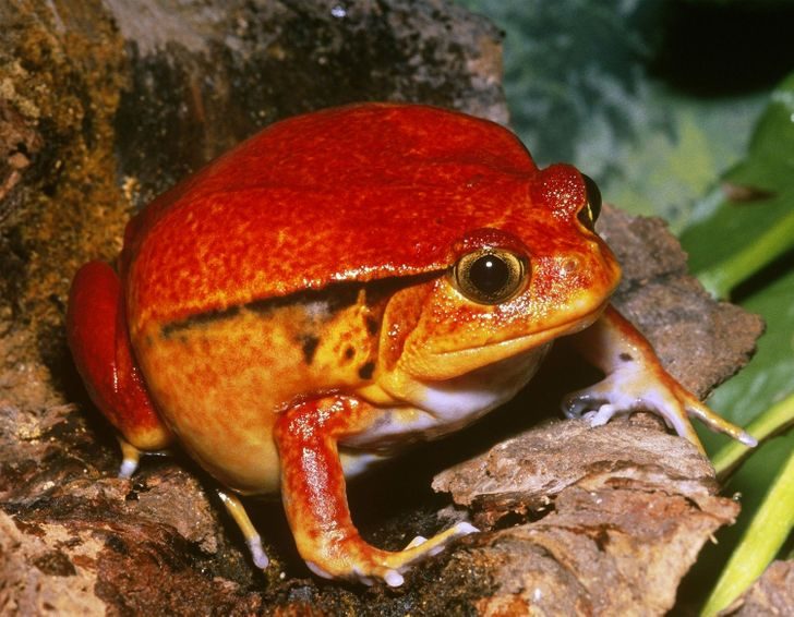 Лягушка-помидор с Мадагаскара честно предупреждает желающих полакомиться лягушатинкой, что она несъедобная, — об этом ясно свидетельствует ее яркий окрас. Но для очень глупых или слишком голодных у нее есть и особое средство: она выделяет липкое и токсичное белое вещество, способное склеить челюсти хищника.