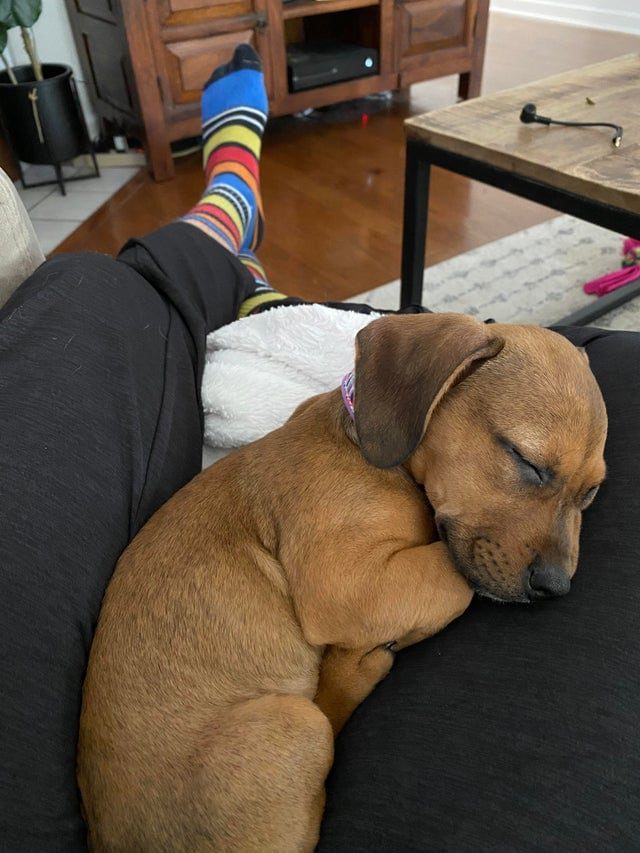 Собачку Мочи забрали с улицы домой. Вчера она впервые заснула в тепле.