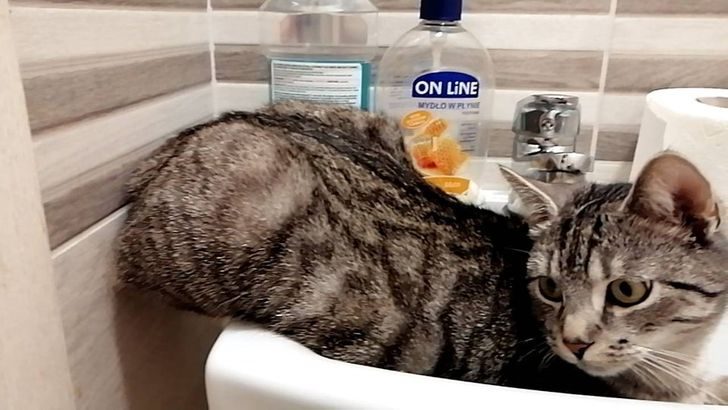 «Что ж… вот так мой кот сидит в раковине»